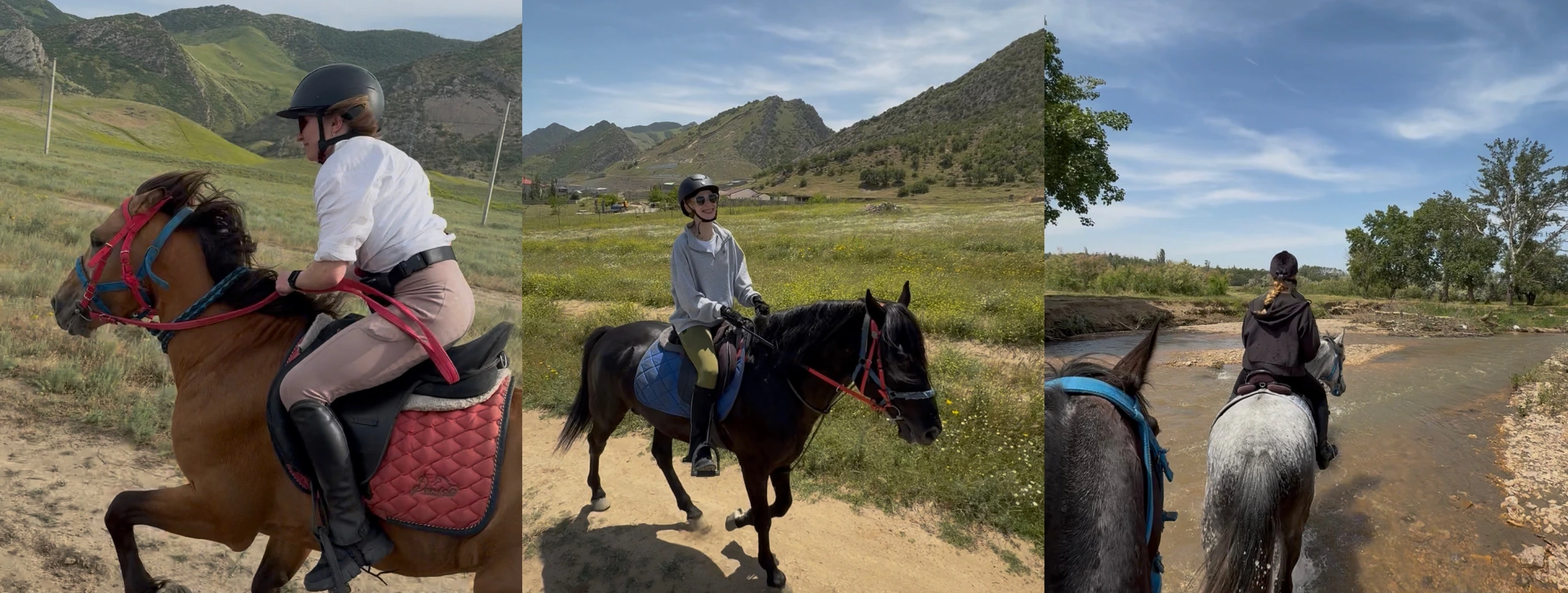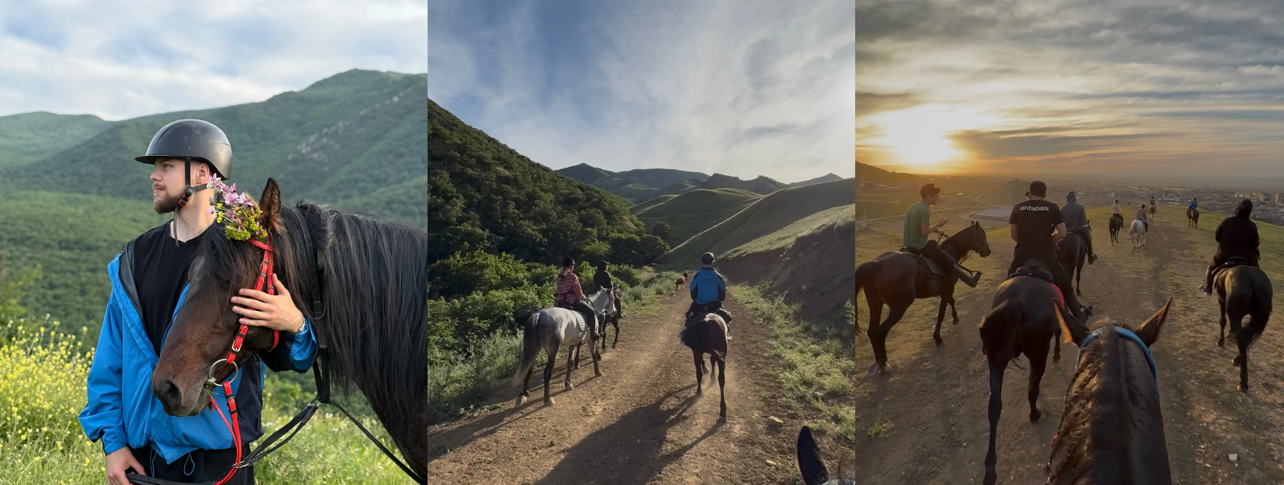 🔘 НАШ ПЛАН ПО ДНЯМ1 день | Все встречаемся в аэропорту г. Махачкала (прилетаем до 13:00). Выдвигаемся в уютный гостевой дом (ехать 30-40 мин). Заселяемся и готовимся к первому конному выезду. Далее выдвигаемся на конную базу «Horses05», где нас ждёт вкусный обед. Знакомимся с инструкторами и с нашими лошадьми