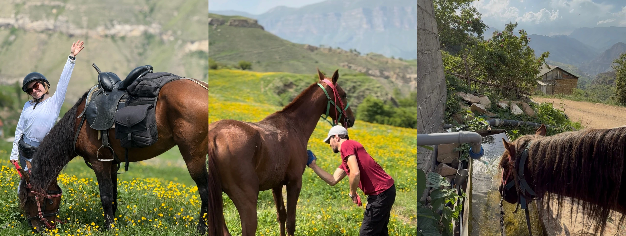 После вкусного завтрака отправимся на конюшню команды «АВАР», которая находится ещё выше в горах, в селе Митлиуриб (около 40 мин езды). По прибытии: инструктаж по технике безопасности, распределение лошадей, расфасовка личных вещи в подсумки и старт.